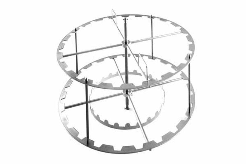 - Korpus kosza radialnego można łatwo przekształcić w kosz tangencjalny, dokładając cztery siatki mocujące do pracy tangencjalnej (Art. nr 7761). Wówczas można odwirowywać cztery duże ramki o wysokości do 30 cm. W takiej konfiguracji można zastosować kieszeń na wosk odkrywkowy (Art. nr 7758), która ułatwia spływanie miodu z przykrywek woskowych.