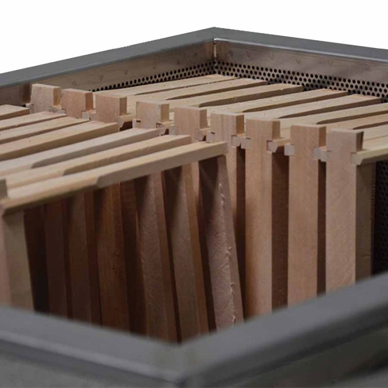 - Obsługa: napełnić zbiornik wodą, umieścić ramki w perforowanym koszu, podgrzewać palnikiem gazowym lub paliwem stałym (palnik gazowy nie wchodzi w skład zestawu).
