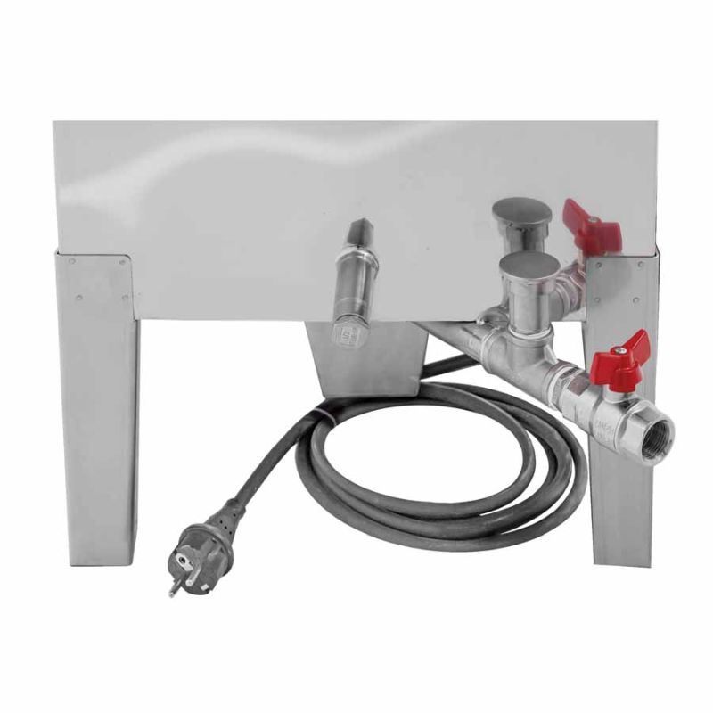 - grzałki zanurzeniowej 3 kW/230 V z regulatorem temperatury 30–110 °C i zabezpieczeniem przed pracą na sucho.