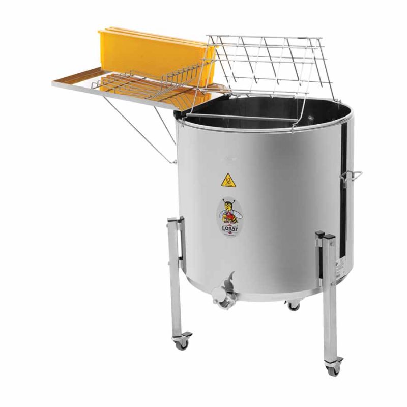 Przeznaczenie: Całe plastry (bez cięcia) – idealne do topienia wosku z odkrywek, miodów z melezitozą i miodów skrystalizowanych. Pojemność: ok. 40 kg wosku z odkrywek; miejsce na ok. 14 ramek Zander / 14 DNM / 28 Dadant-blatt / ok. 12 ramek Langstroth (1/1) lub 18 AZ. Maksymalne wymiary wewnętrzne: średnica kotła wewnętrzna 63 cm, wysokość wewnętrzna 51 cm.