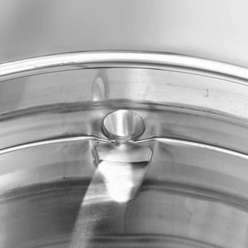- Pokrywa z uszczelką Ø 63 cm do modelu 3295 z uchwytami (Art. 329505) – z odpowiednim otworem na wąż generatora pary; umożliwia przekształcenie topiarki w topiarkę parową do topienia starych plastrów.