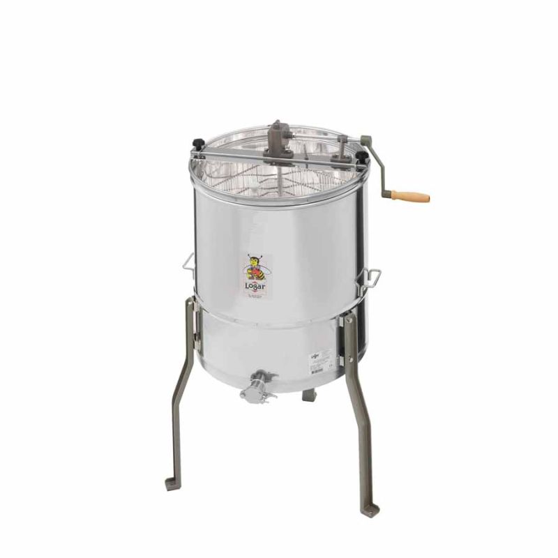 Eine Honigschleuder der Marke Logar – Synonym für Langlebigkeit, innovative Lösungen, die die Arbeit erleichtern, zuverlässigen Service und Ersatzteile.
