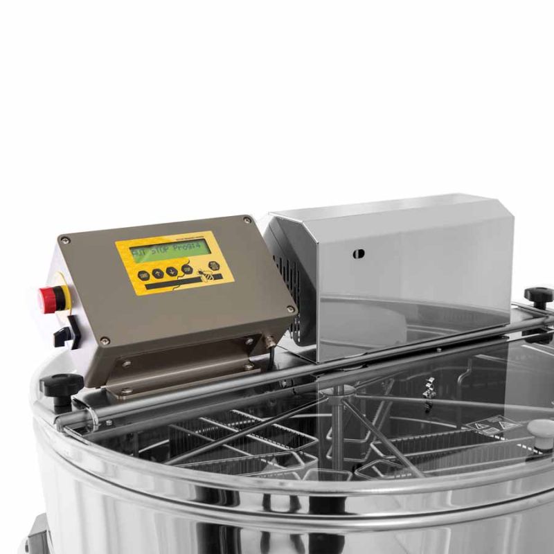 Die Honigschleuder ist mit einem Vollautomatikantrieb ausgestattet. Die Automatik sorgt dafür, dass der gesamte Schleudervorgang automatisch verläuft. Zur Verfügung stehen 8 voreingestellte Programme, die beliebig geändert werden können. Der Antrieb ist äußerst leise und ruhig.