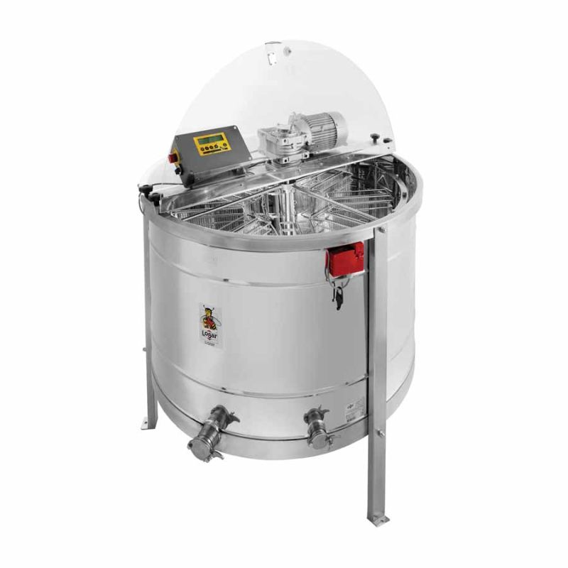 Samoodwracająca wirówka do miodu na 16 ramek z napędem 750 W / 230 V, w pełni automatycznym sterowaniem oraz wbudowanym zabezpieczeniem blokującym pokrywę w czasie pracy. Kieszenie na ramki wewnątrz wirówki są dwustronne; pomiędzy nimi znajduje się blacha, po której miód spływa. Wirówka wyposażona jest w dwa nierdzewne zawory spustowe (zaciskowe) 2''. Zawór spustowy zamontowany jest w najniższym możliwym punkcie, aby możliwy był całkowity spływ miodu ze zbiornika. Wszystkie elementy mające kontakt z miodem wykonane są z materiałów dopuszczonych do kontaktu z żywnością. Pokrywa wykonana jest z przezroczystego akrylu.