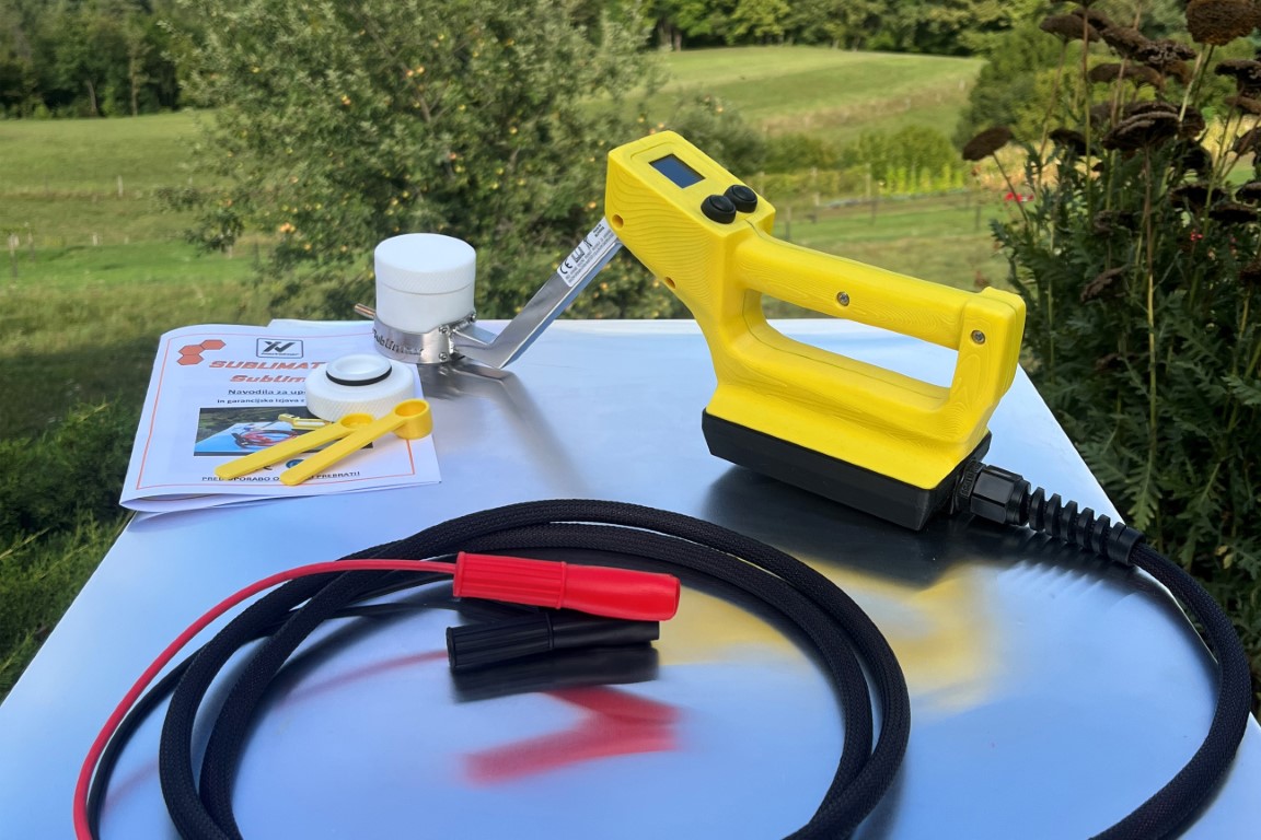 - Die Anschlussspannung des Sublimax-Sublimators beträgt 12 V, als Spannungsquelle eignet sich am besten eine Autobatterie (es ist auch möglich, ihn an ein 220-V-zu-12-V-Netzteil anzuschließen)